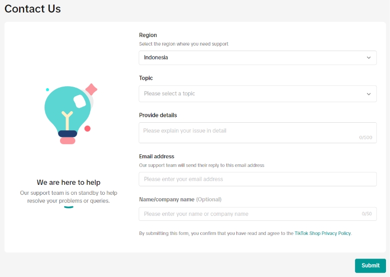 - Anda juga dapat mencoba mengunjungi laman bantuan di TikTok Seller