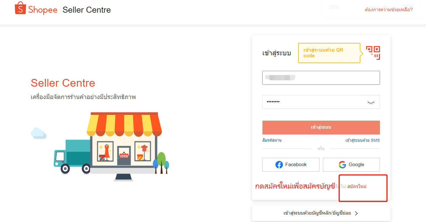 วิธีที่ 1:การลงทะเบียนร้านค้าผ่านหน้า Seller Center (บนคอมพิวเตอร์)