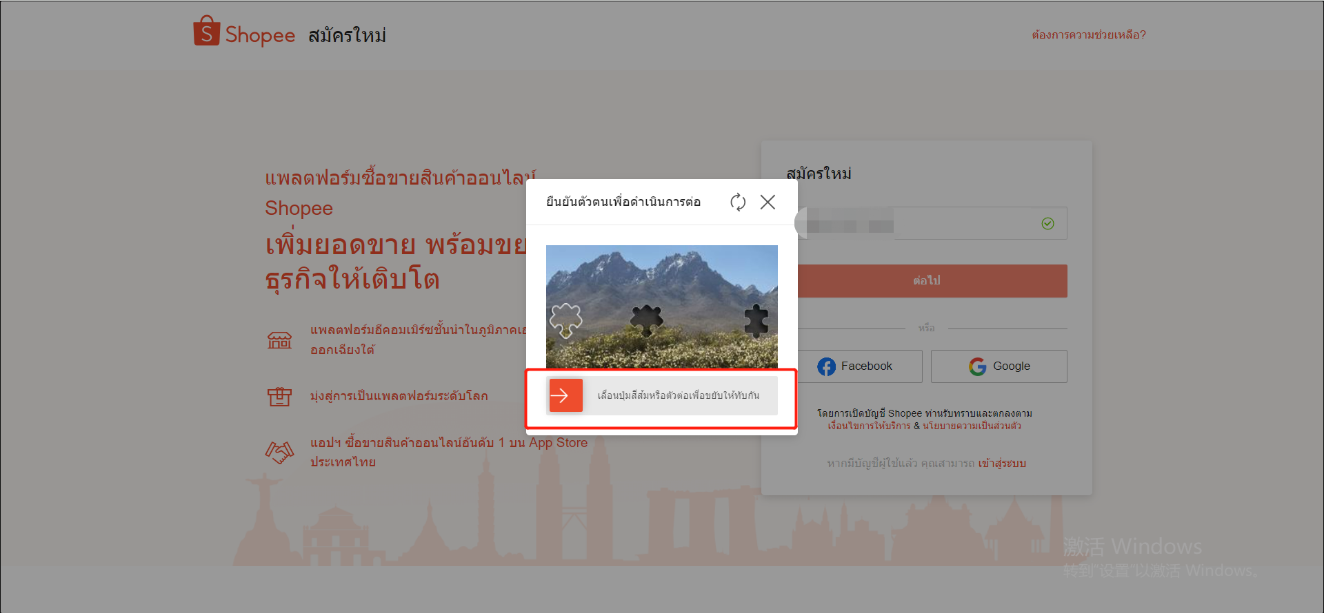 2. รอกหมายเลขโทรศัพท์เพื่อสมัครบัญชี Shopee