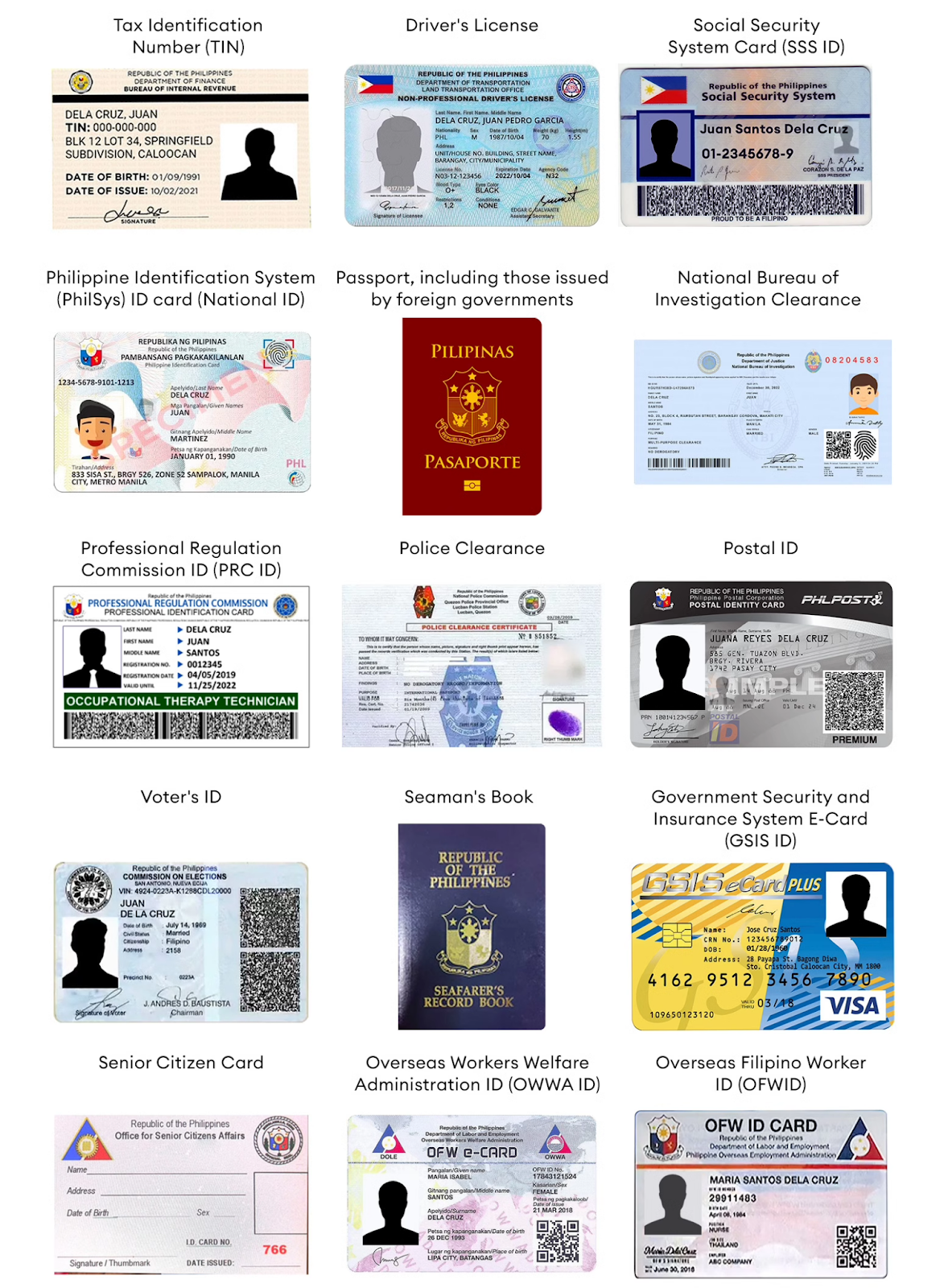 Individual applicants must submit a copy of their government-issued identification documents for verification purposes. Acceptable documents are: