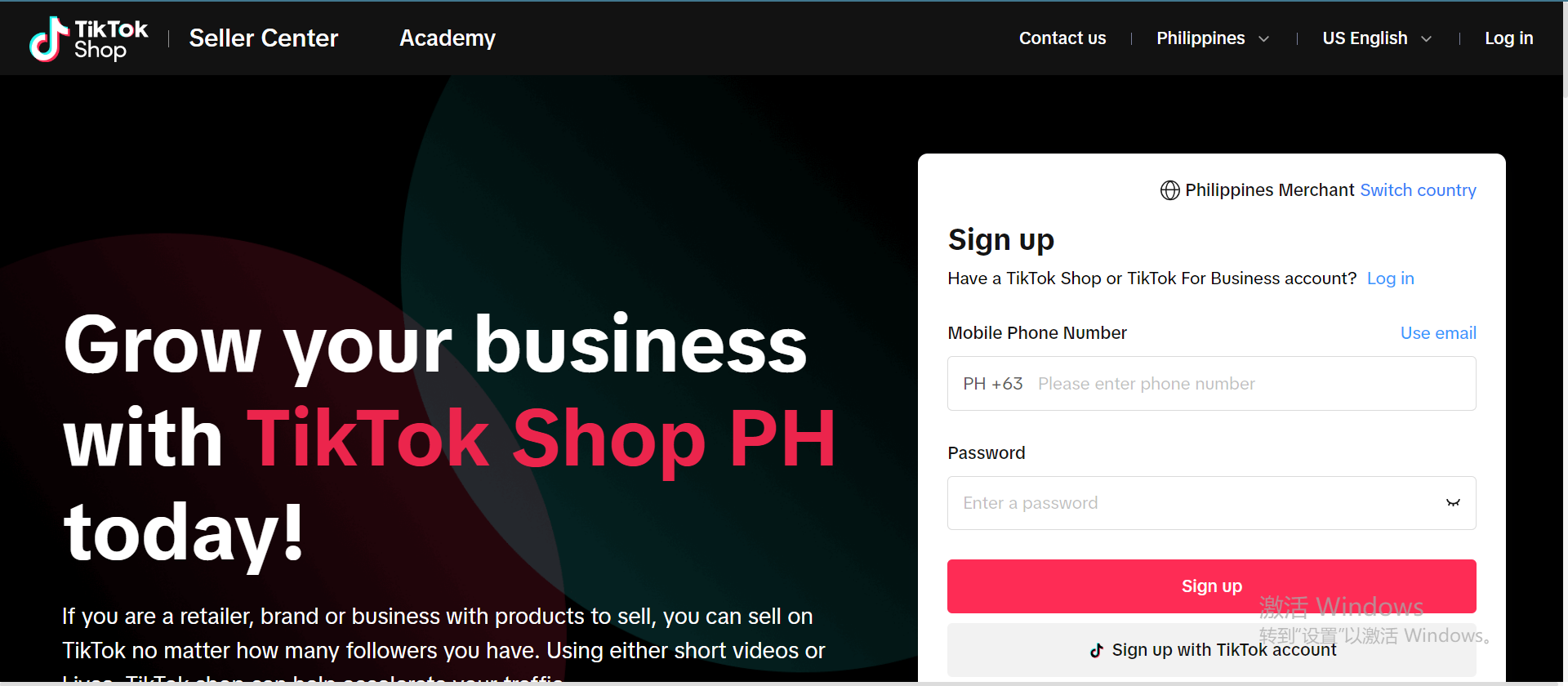 Access the Seller Center: Log into the TikTok Shop Seller Center using your new account. You can also login with your Tiktok account.