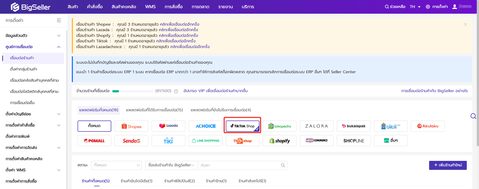 1)เชื่อมต่อร้านค้า TikTok กับ BigSeller