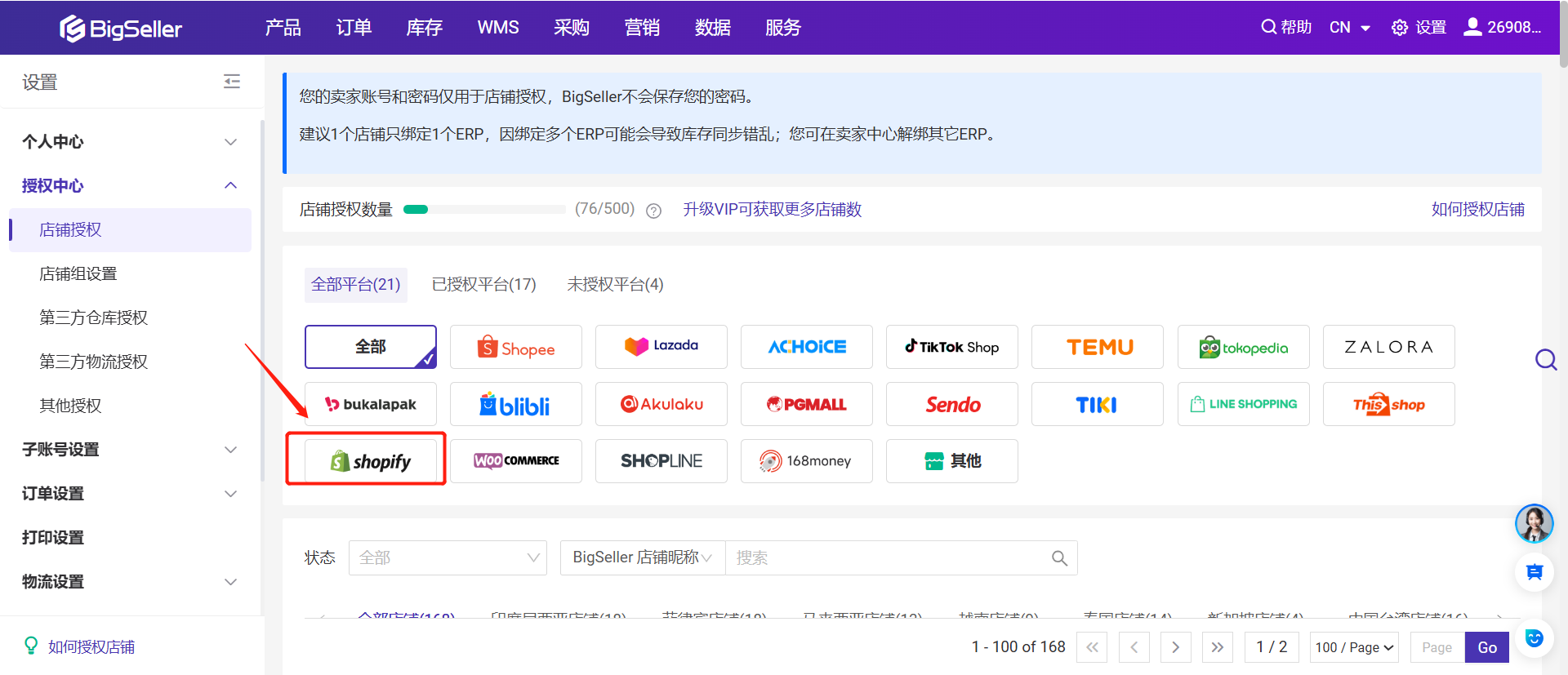 3、开始使用 BigSeller ERP 管理您的Shopify店铺。