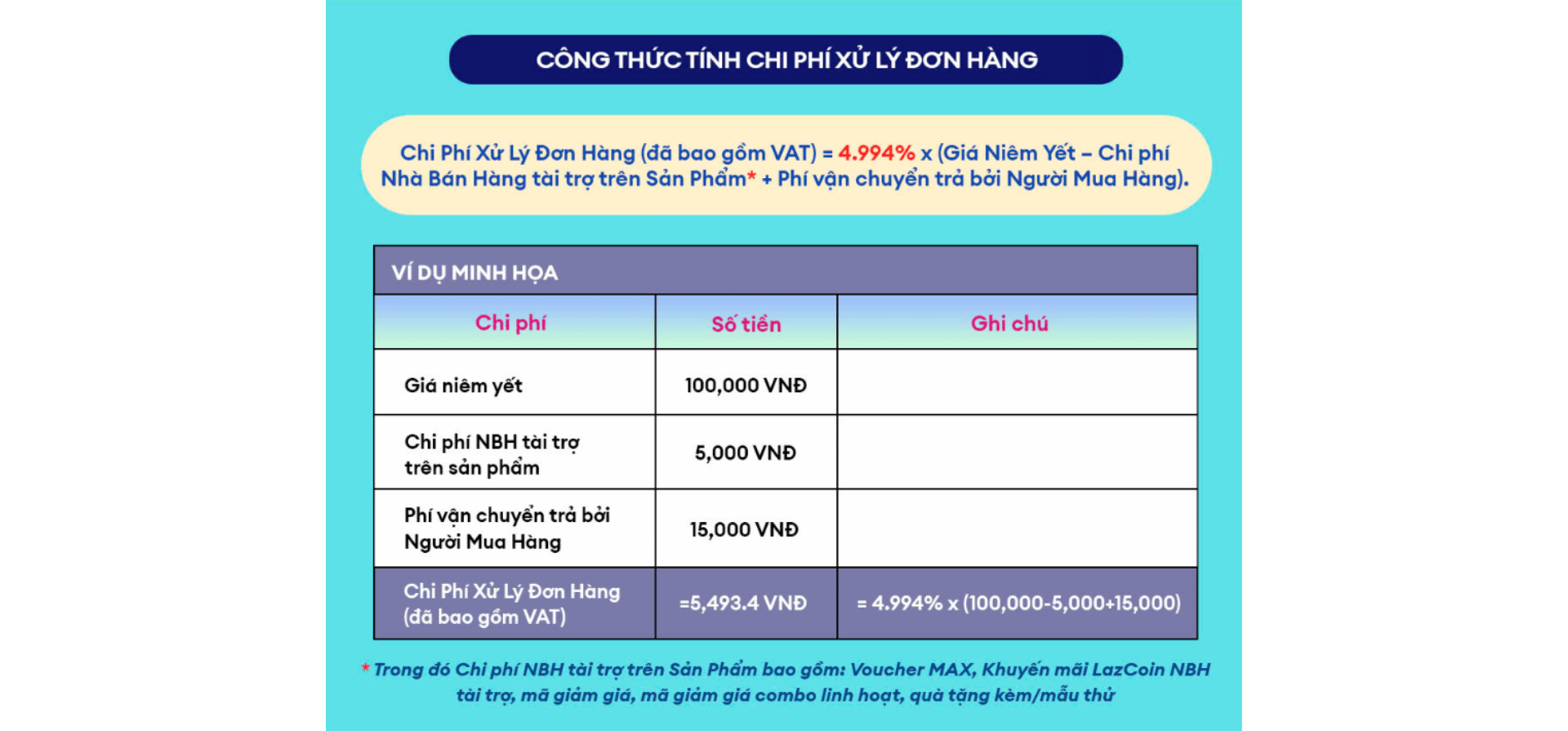 Công thức tính phí xử lý đơn hàng phí bán hàng trên sàn Lazada: