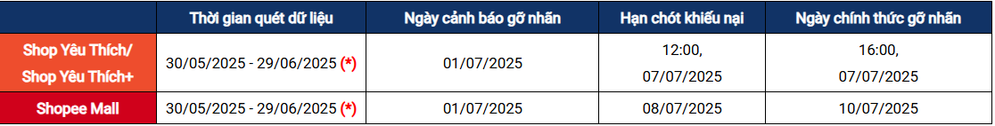 Lưu ý quan trọng: Từ ngày 16/06/2025 đến 29/06/2025, Shopee sẽ chưa áp dụng hình thức phạt tạm khóa tài khoản hoặc gỡ nhãn. Đây là giai đoạn hỗ trợ để người bán có thời gian cải thiện và thích nghi với các chỉ số vận hành mới.