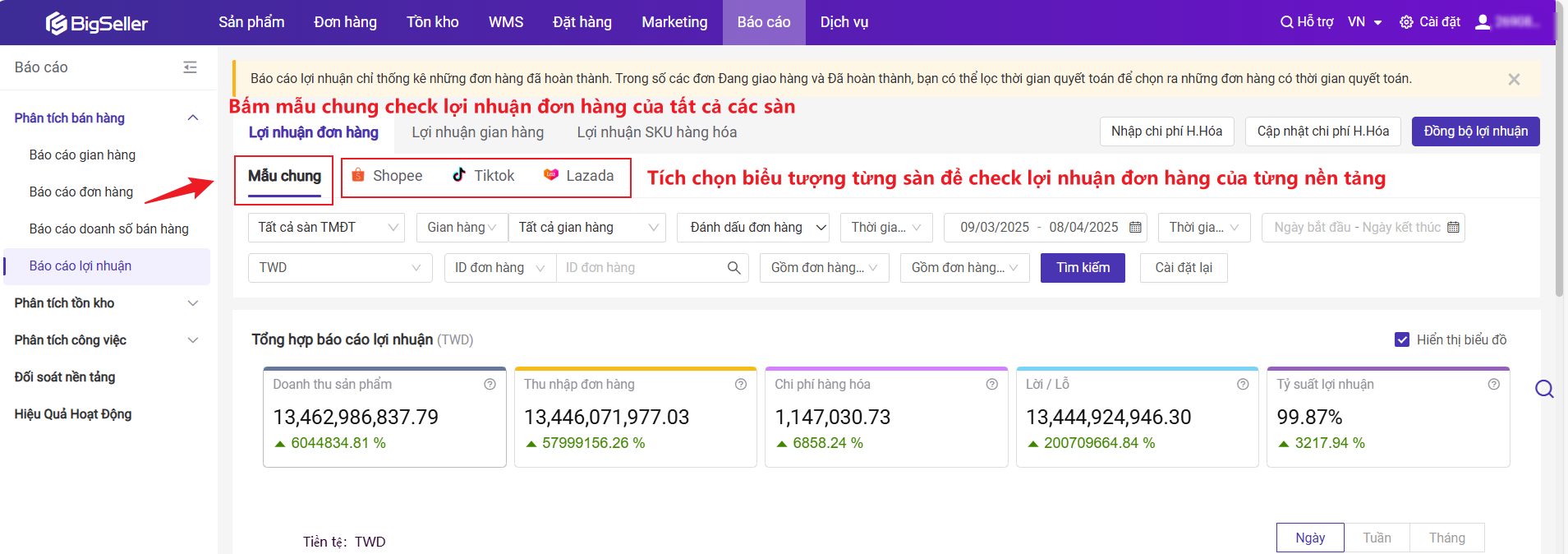 3. Quản lý doanh thu lợi nhuận trong kinh doanh cùng BigSeller