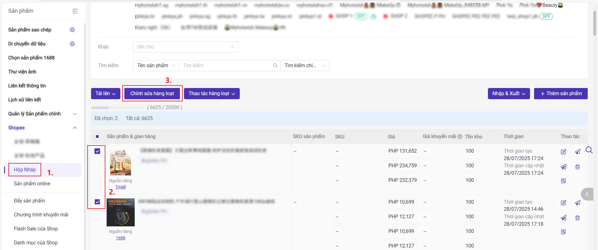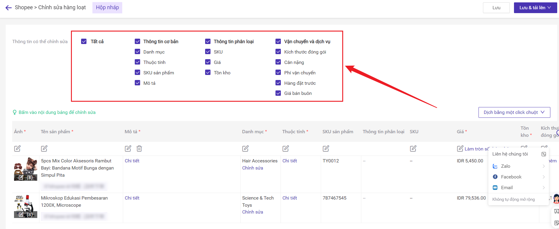 2. Chỉnh sửa thông tin sản phẩm hàng loạt trên Shopee