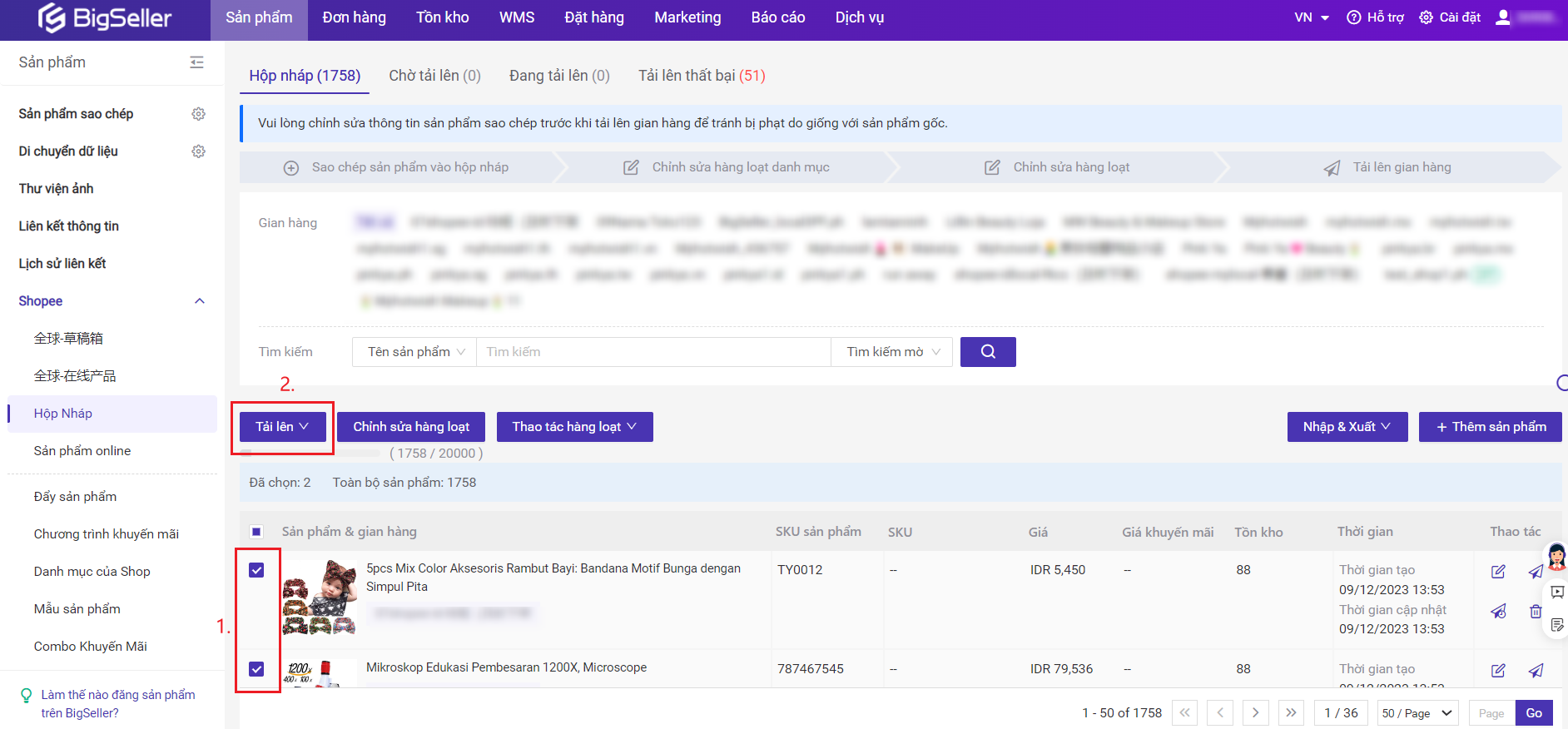 Tại BigSeller bạn có thể đăng sản phẩm hàng loạt lên các shop cùng một lúc