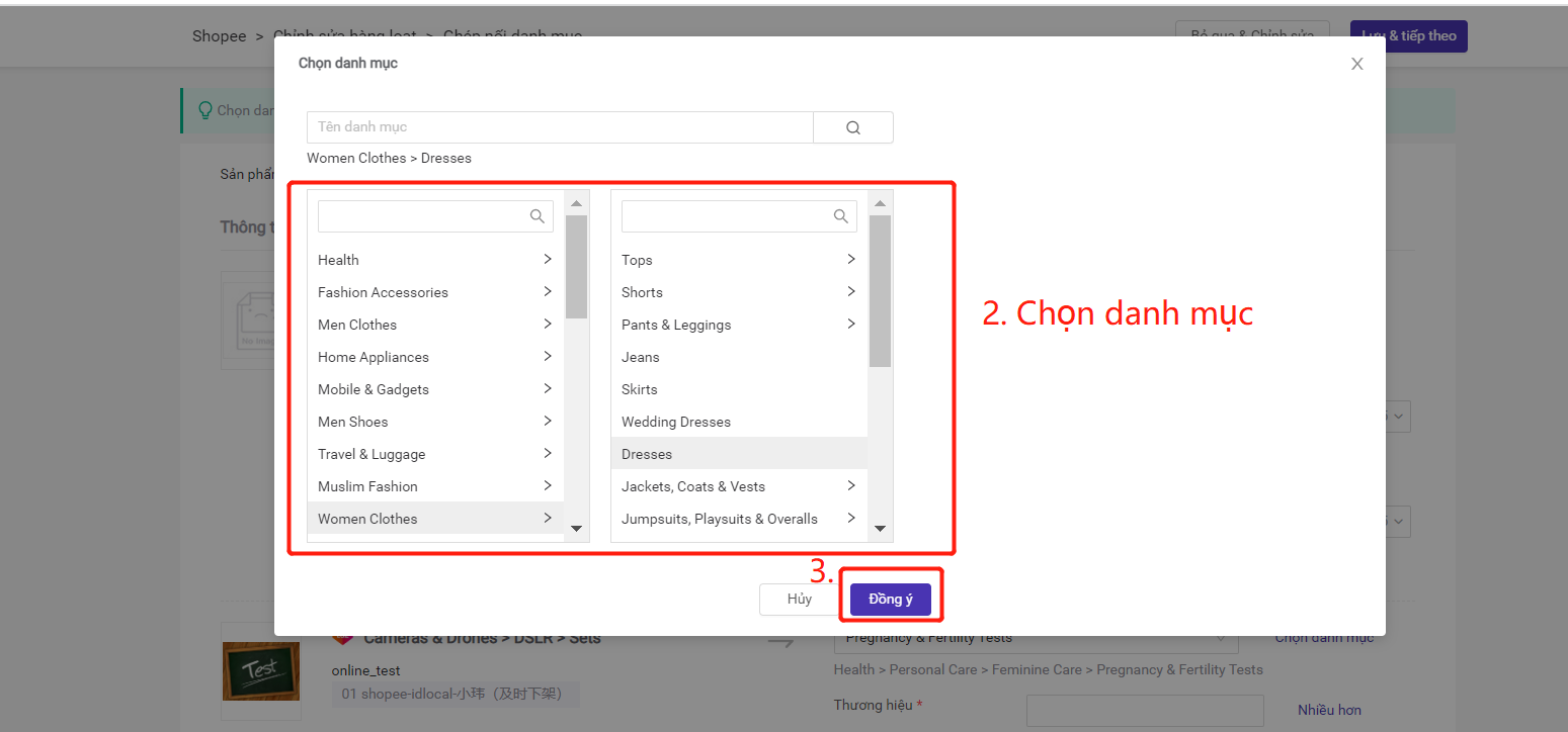 Chọn sản phẩm muốn chỉnh sửa hàng loạt > Bấm chỉnh sửa hàng loạt, bạn sẽ vào trang ghép nối danh mục..
