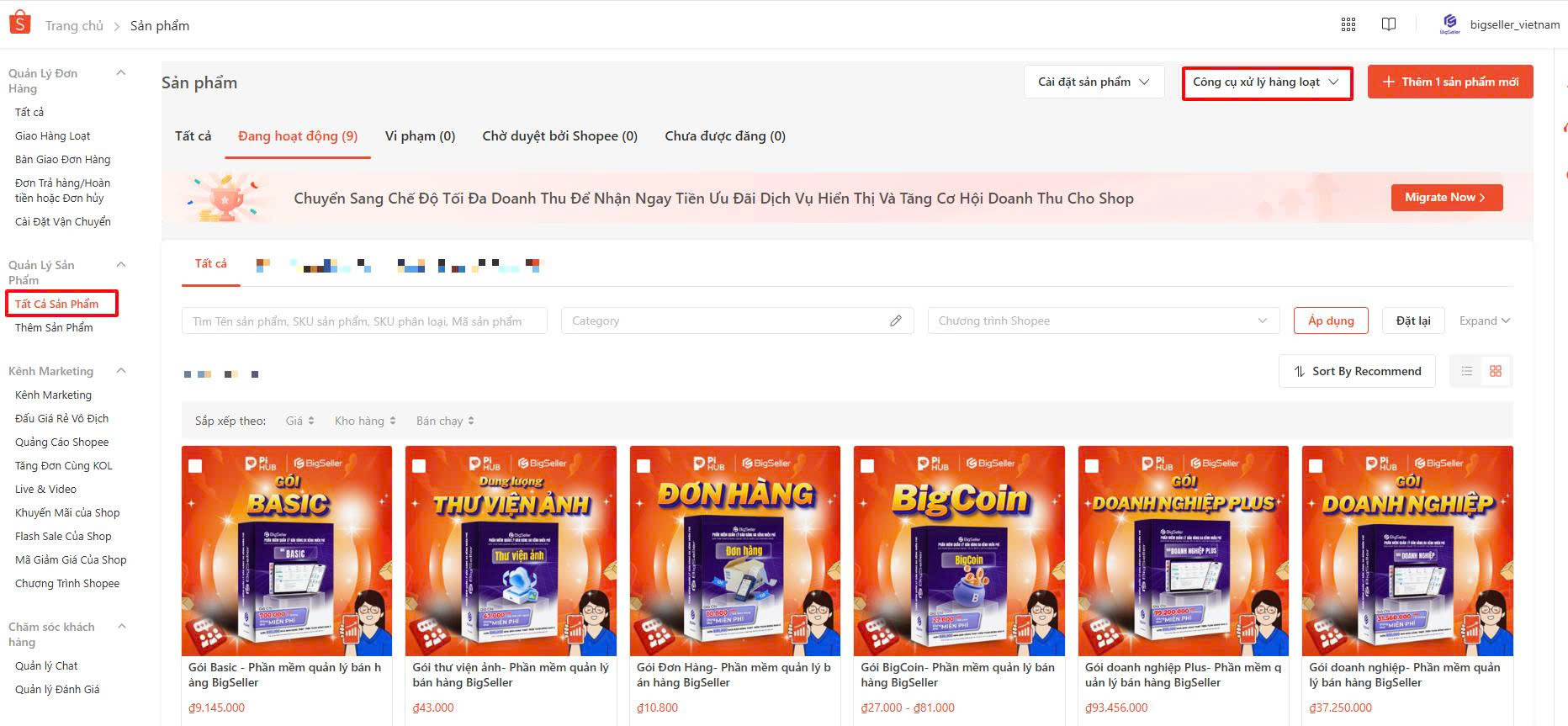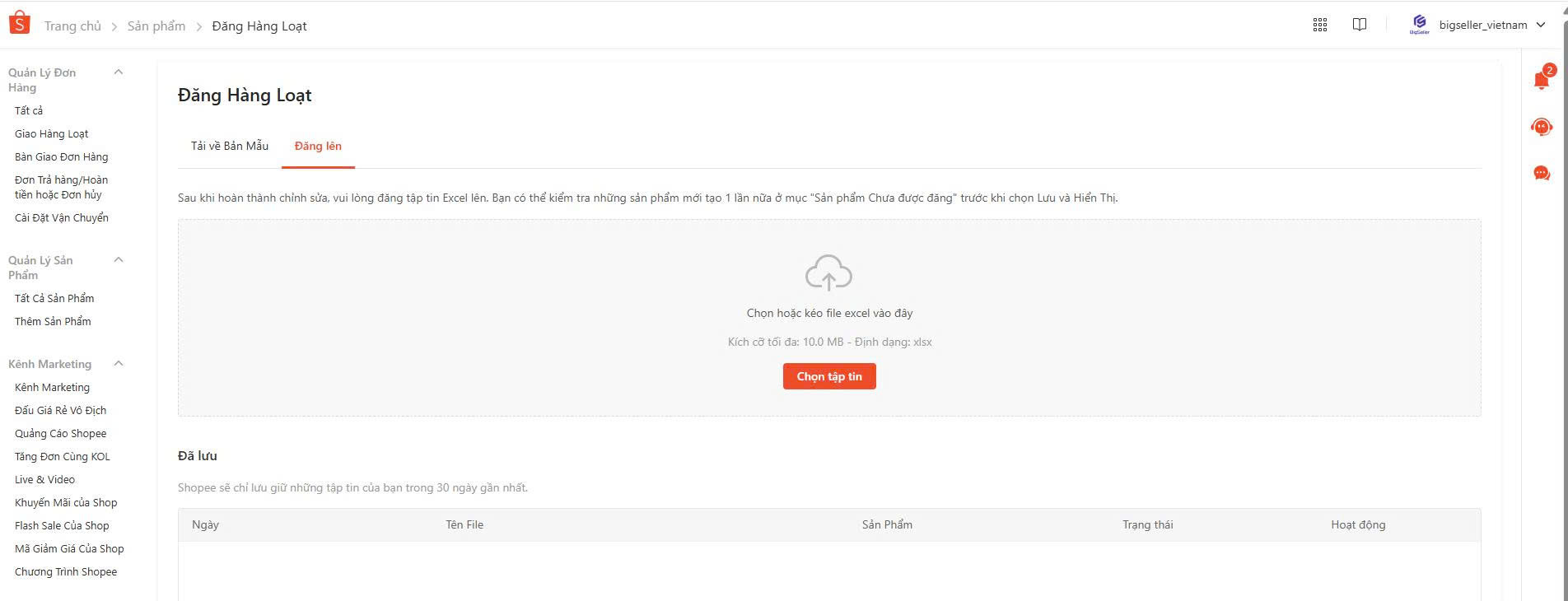 1.1. Đăng sản phẩm hàng loạt Shopee tại seller center