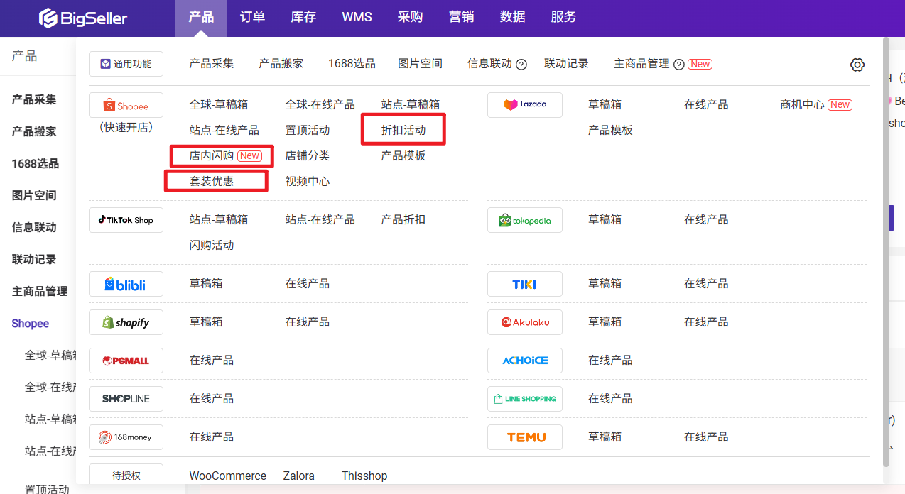 使用BigSeller的闪购活动,套装优惠,折扣活动功能,比卖家中心后台更加方便,在BigSeller可以批量创建多时间段的闪购活动(卖家中心一次只能创建一个时间段的闪购)