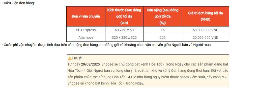 Đặc biệt, trong giai đoạn khởi động (29/08 – 12/10/2025), Shopee sẽ không tính Tỷ lệ giao hàng trễ cho các đơn Hỏa Tốc Trong Ngày nếu Người bán chưa kịp nhấn “Chuẩn bị hàng” đúng hạn.