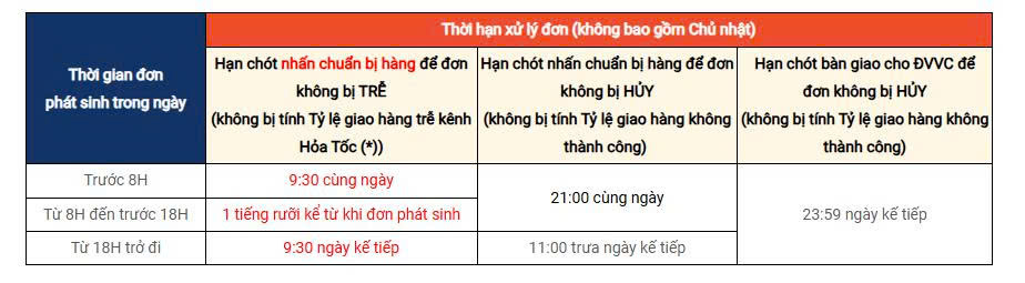 2. Thời hạn xử lý đơn hàng Hỏa Tốc Trong Ngày
