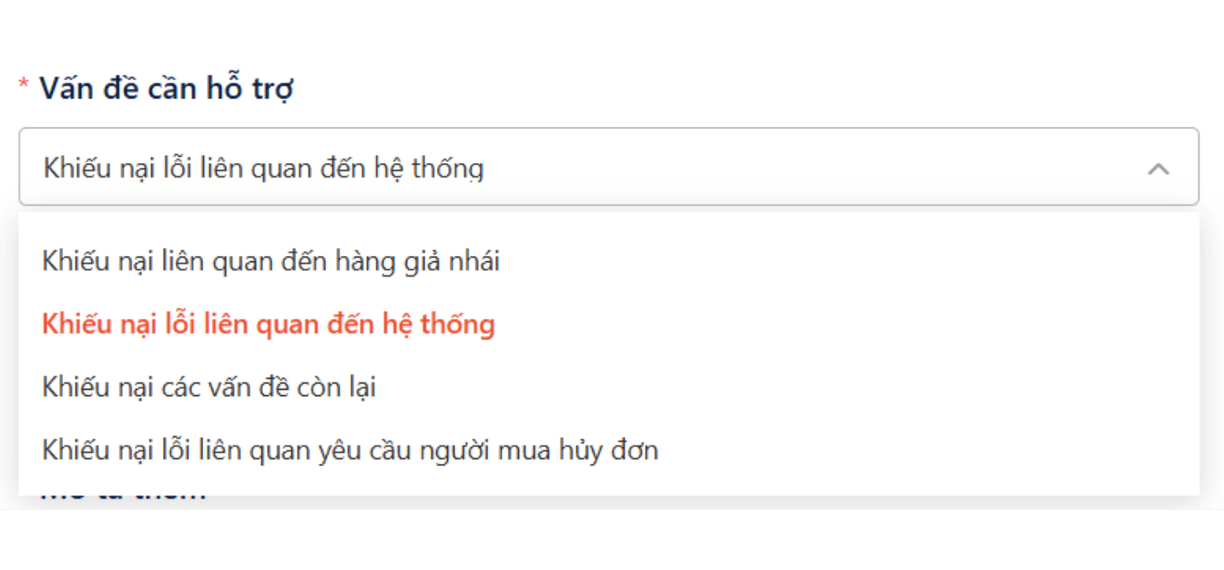 Bước 2: Chọn các vấn đề cần hỗ trợ theo nhu cầu của bạn