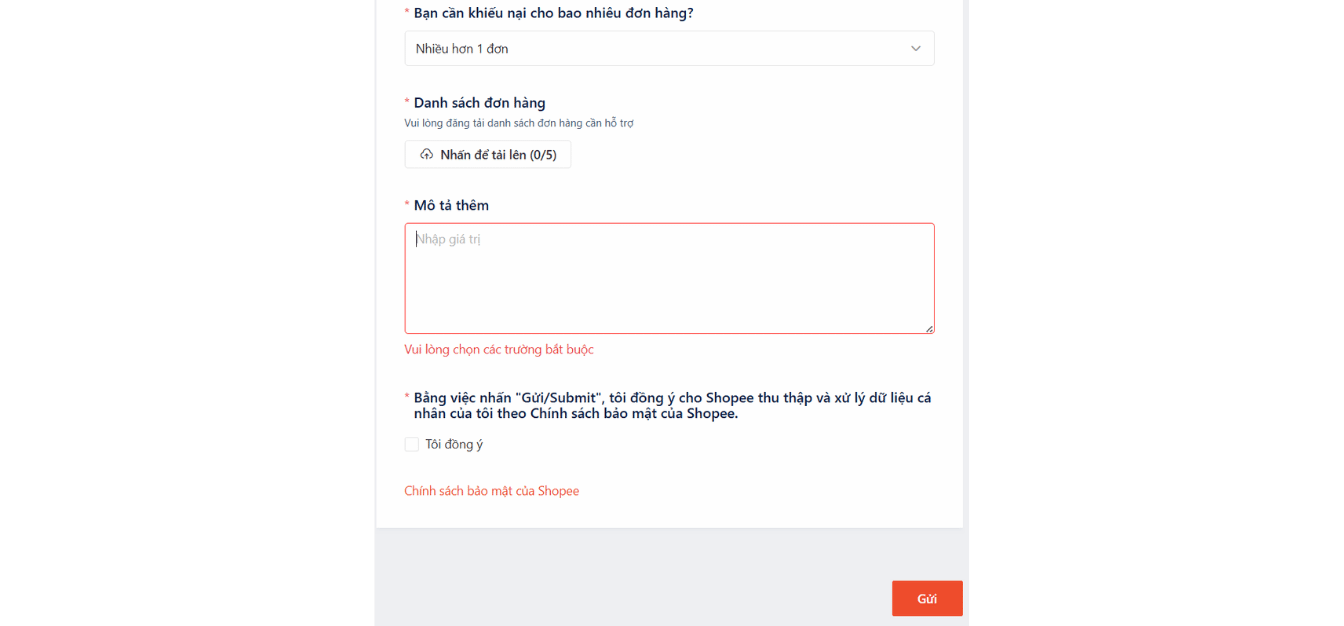 Bước 4: Thêm mô tả cụ thể để Shopee có thể hiểu hơn đơn khiếu nại