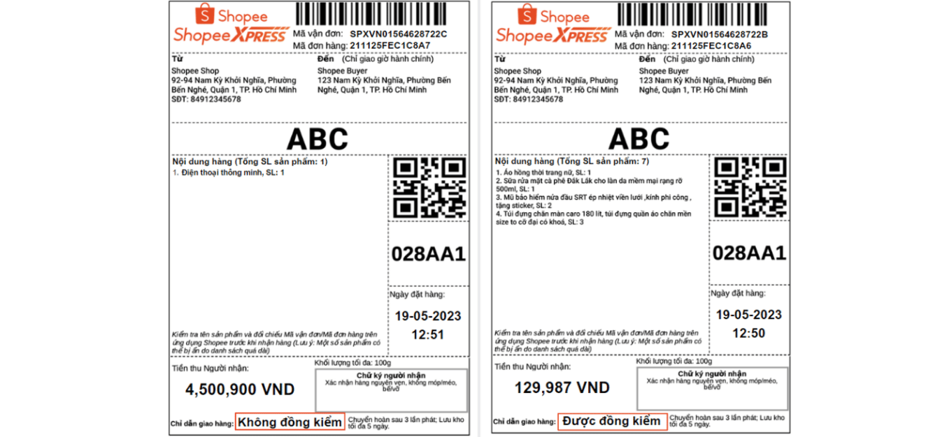 Phiếu giao hàng cho chương trình Shopee đồng kiểm (nguồn Shopee)
